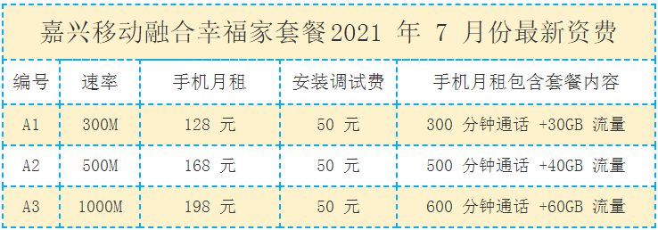 海盐县移动宽带2021年8月份套餐及宽带报装表